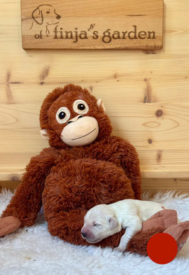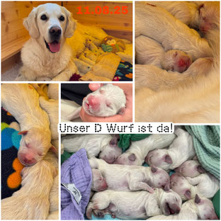 Nach einem komplikationslosen 1. Wurf von Aponi und einer wunderschönen jetzigen Trächtigkeit fand pünktlich am 62. Tag der Temperaturabfall statt und 18 Stunden später der erste Fruchtwasserabgang.